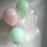 The set Apostille is a dream for a girl who loves fairy tales and Magic. The main accent is a large foiled balloon in the form of a mermaid, supplemented with a number (any can be selected) and a bouquet of 7 balloons in gentle mint, pink and transparent tones with confetti. The composition creates a real atmosphere of underwater celebration.