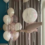 Included in the set: 1 crystal balloon 70cm with confetti and custom inscription 1 figure: stork 1 cluster of 12 balloons ( 3 balloons 30cm white with confetti, 3 balloons 30cm transparent pink, 6 balloons 30cm pastel) 12 ceiling balloons with tinsel ( 3 balloons 30cm transparent pink, 9 balloons 30cm pastel) 3 weights 4 bags for transportation Total number of balloons: 26 Filling: All balloons with helium длина, мм: 2000 ширина, мм: 2000 высота, мм: 2000
