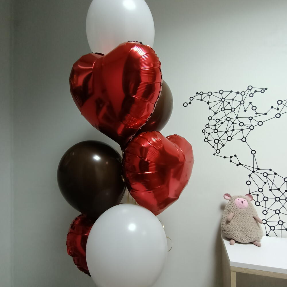3 foil heart balloons, 4 latex balloons