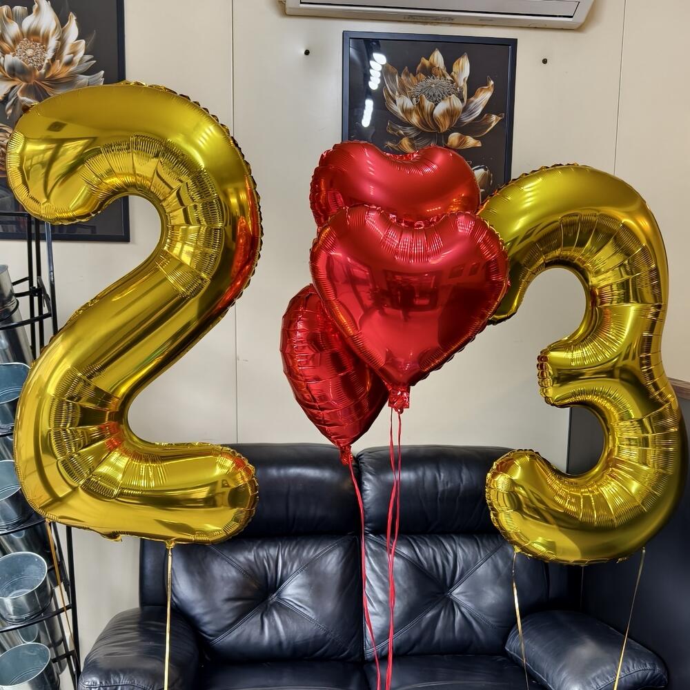 Set di palloncini con elio Il set contiene 2 palloncini a forma di numero e 3 palloncini a forma di cuore