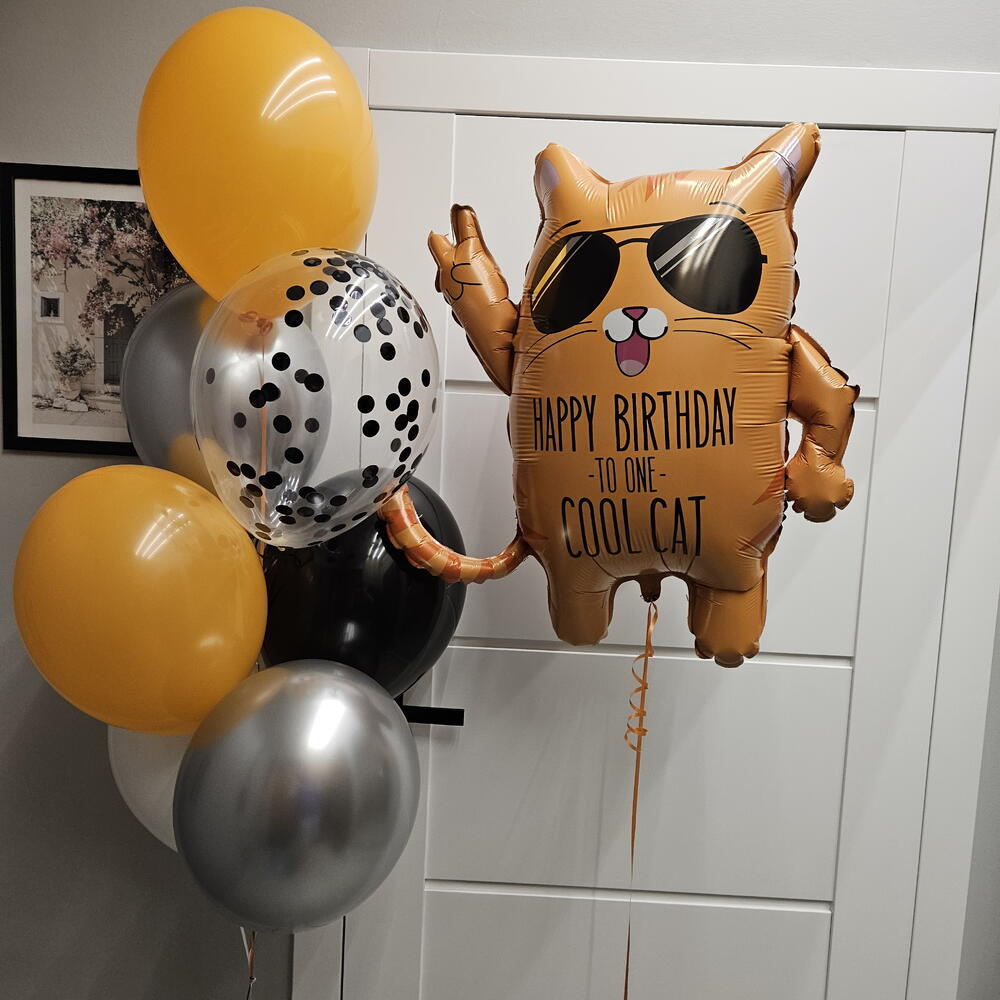 Il set contiene: Gatto 4 palloncini in lattice 2 platinati 1 con coriandoli