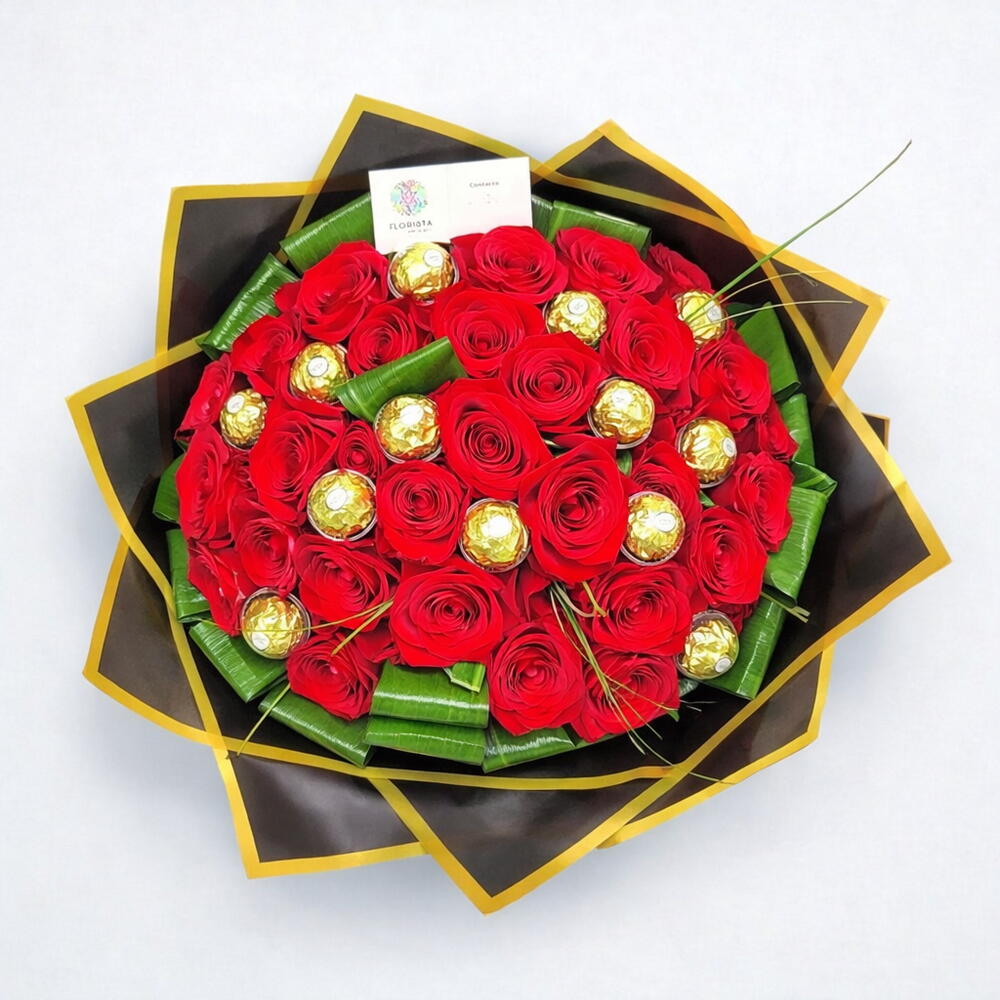 rosas vermelhas equador - 30 pz bombons ferreiro rocher - 15 pz