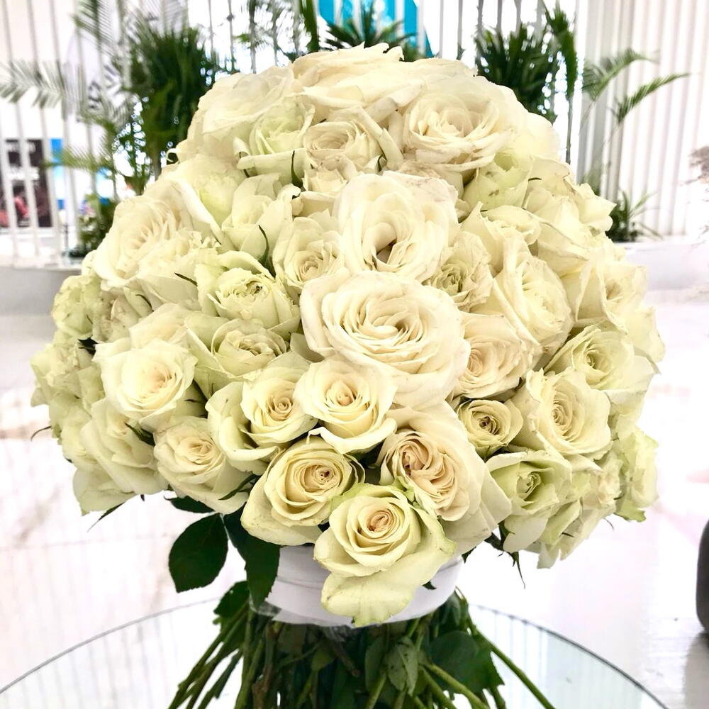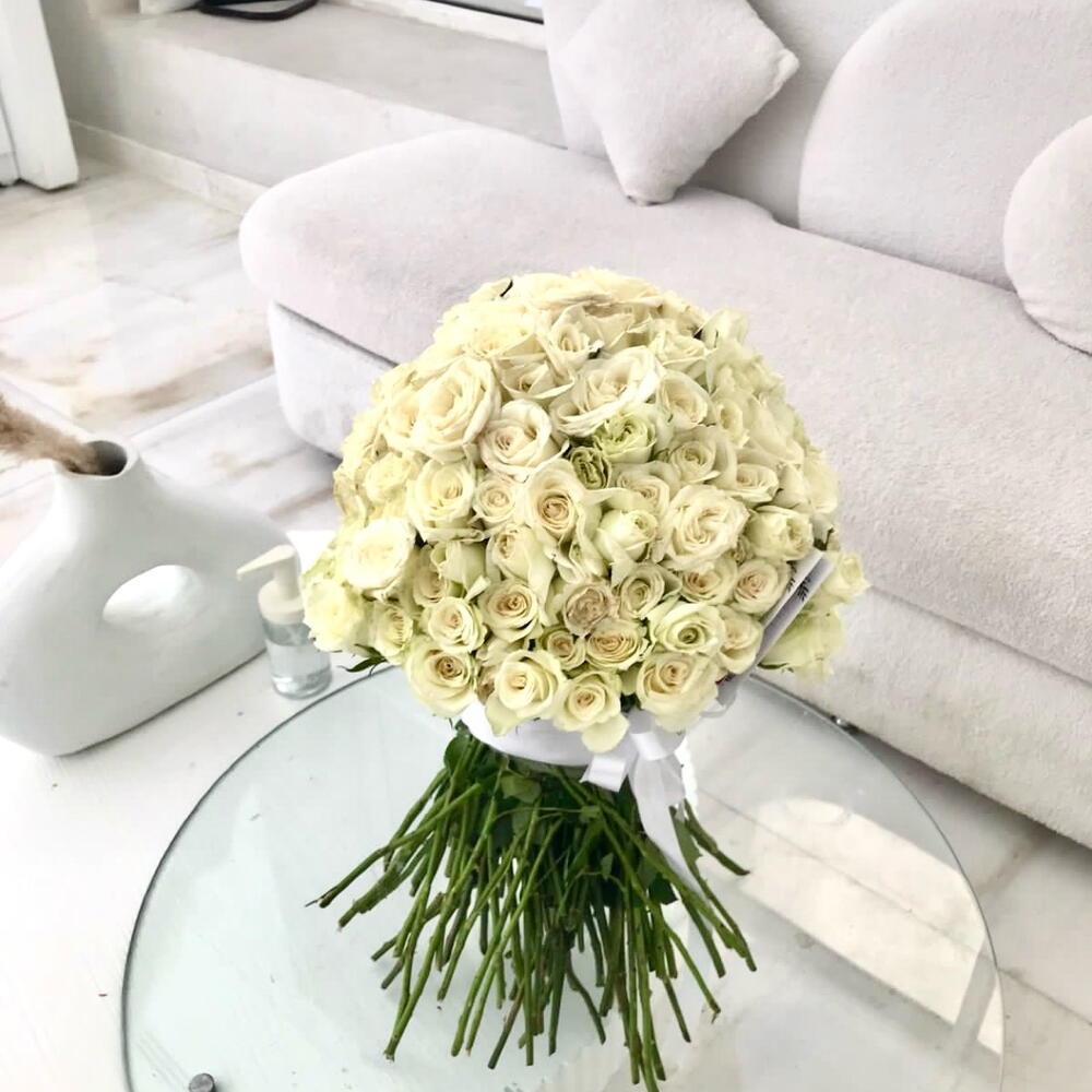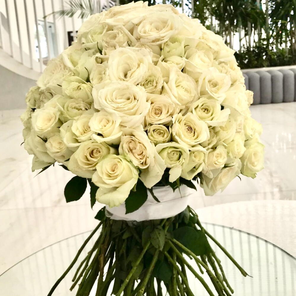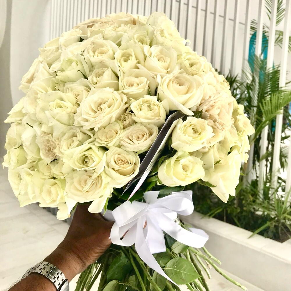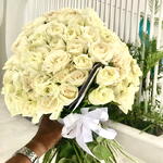 141 White Roses With white Ribbon