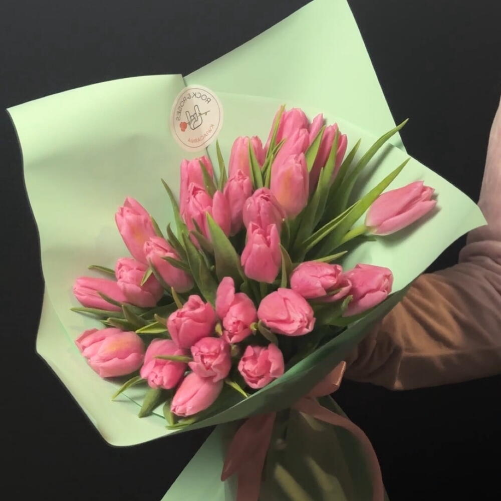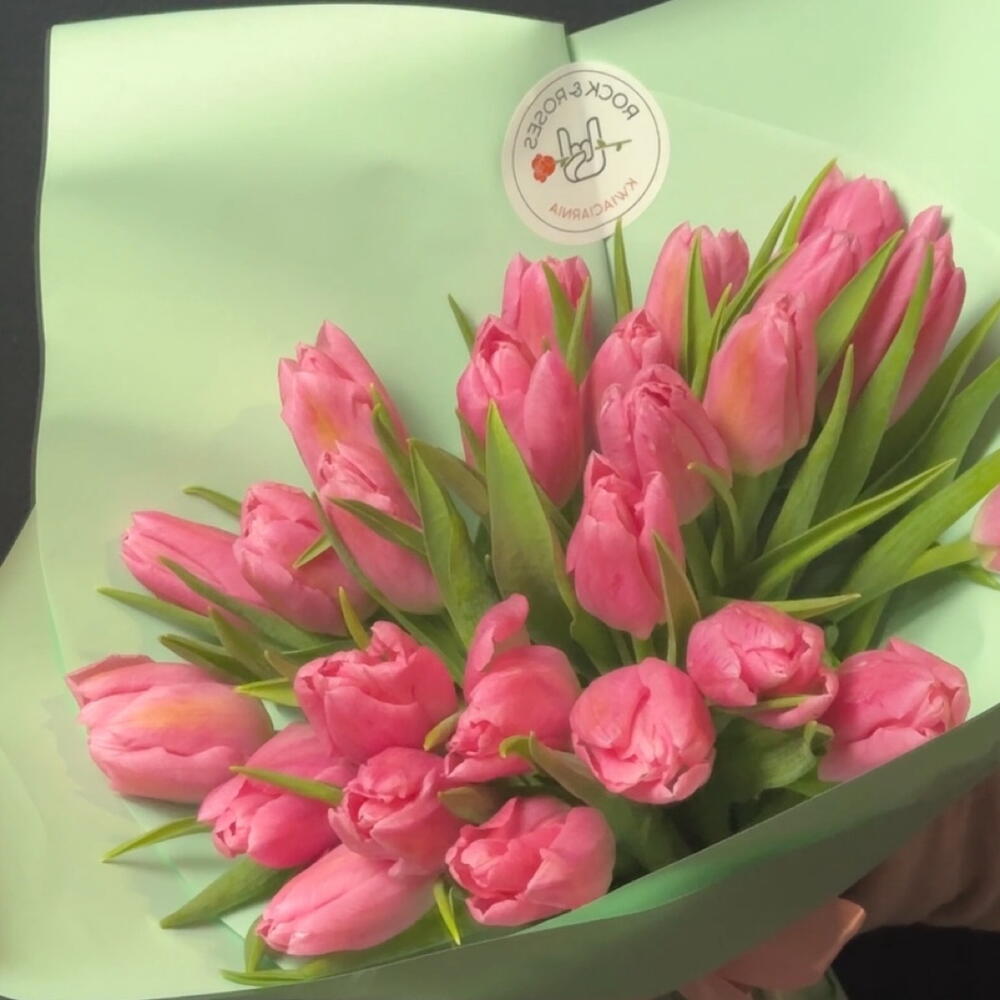 Tulipani rosa freschi, sodi e incredibilmente teneri. Li abbiamo avvolti in un'elegante confezione verde menta per creare la sensazione della vera primavera tra le tue mani. Un regalo classico che è garantito per far sorridere. Perfetto per: Auguri di compleanno, la Festa della Mamma, anniversari, o semplicemente come promemoria dei tuoi sentimenti più affettuosi. Perché i nostri tulipani sono i migliori: 🌷 Boccioli grandi e gambi robusti. 🌷 Appena arrivati (i fiori sono freschi). 🌷 Elegante combinazione di sfumature rosa e verde menta.