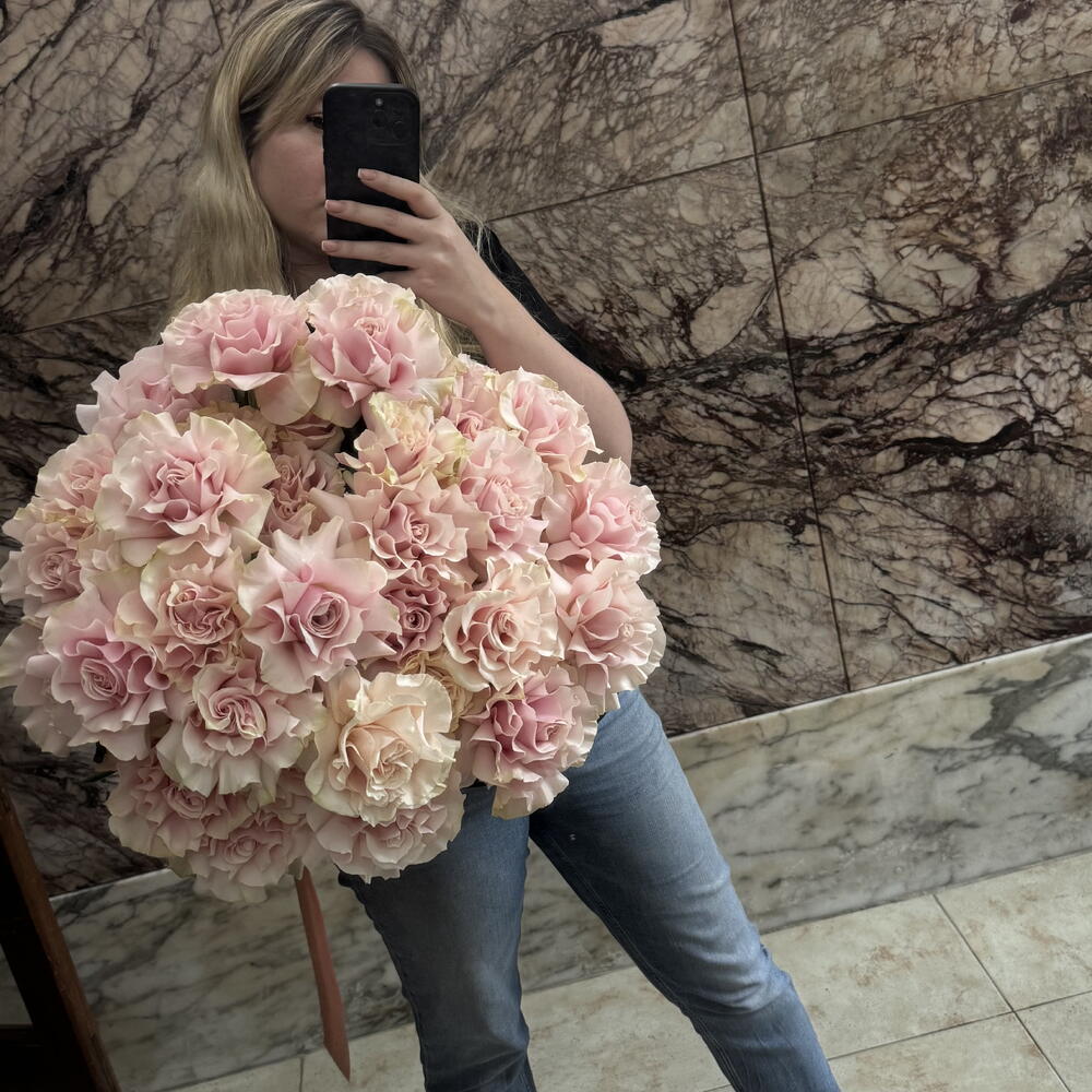 Очень красивый букет доставили за город. Причем я не знала адреса и телефона в стране получается, знала только имя в мессенджере, они без проблем написали и уточнили адрес.