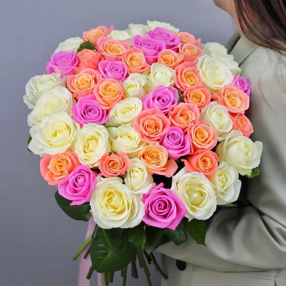 51 роза микс под ленту