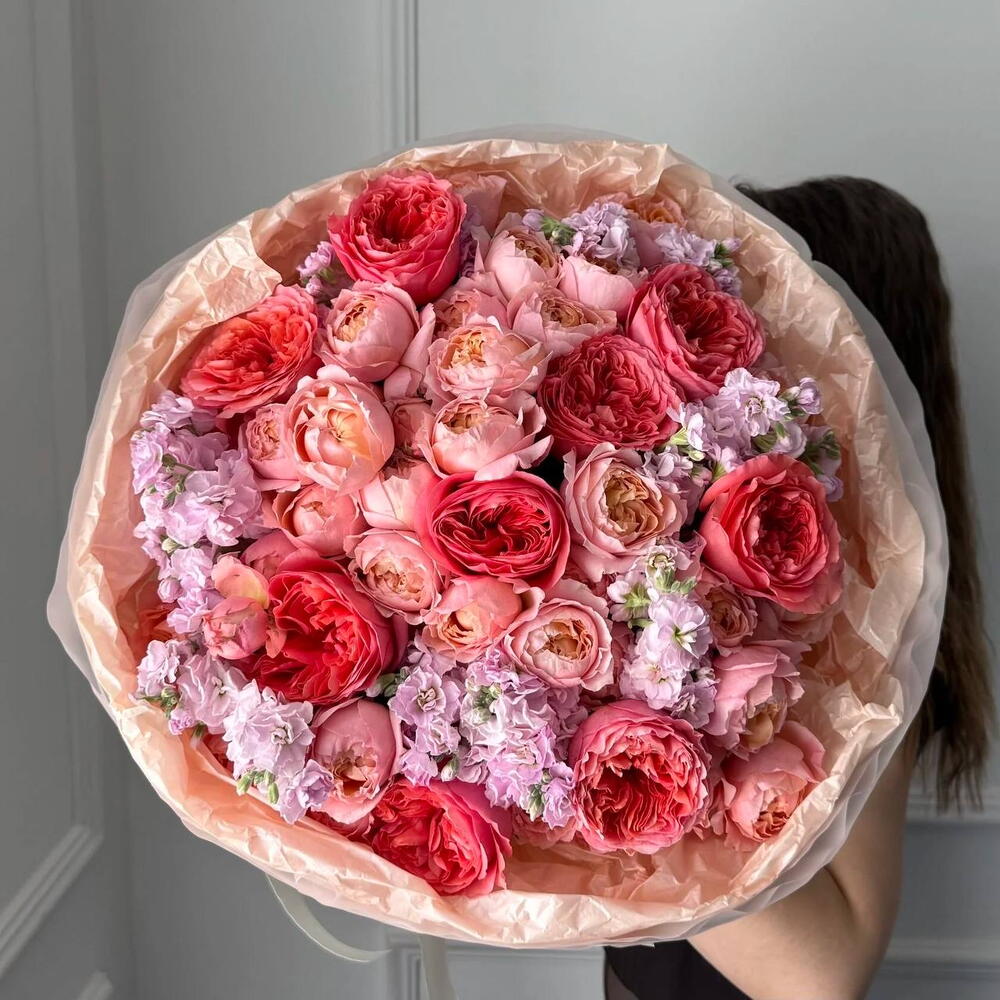 Mattiola - 13 pz Rosa peonia - 9 pz Пионовидная кустовая роза - 8 pz