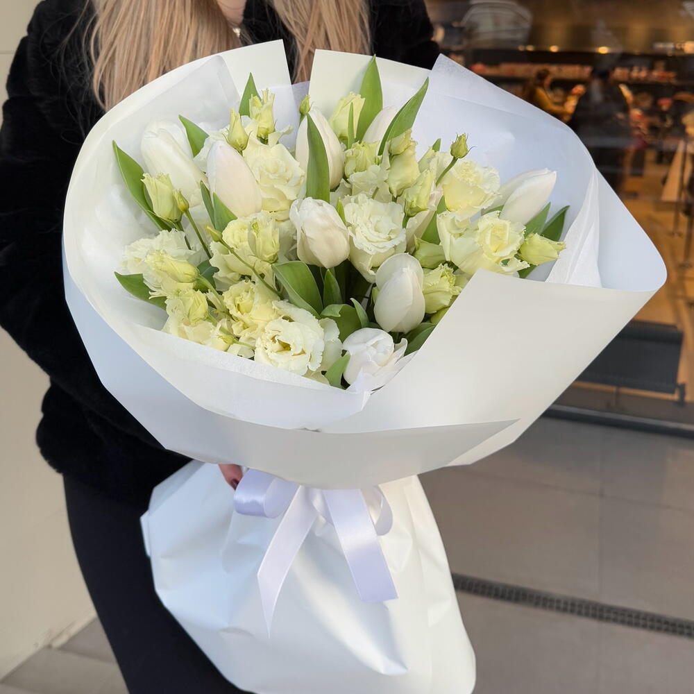 Тюльпан белый - 9 pz эустома кучерявая кремовая - 4 pz