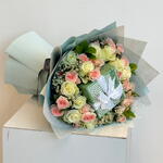 ارتقِ بهديتك الزهرية مع تنسيقنا الخاص «اختيار بائع الزهور». يضم باقة مختارة بعناية من 12 زهرة جميلة، مع خمس قطع من أوراق الزينة الطازجة لتعزيز أناقتها. وتزيده تفرّدًا أربعة سيقان من الليمونيوم الرائع. وتكتمل التشكيلة بعلبة شوكولاتة باتشي الفاخرة، لتعبّر بلطف عن الحلاوة في كل لفتة. وأخيرًا، ولإضافة لمسة دقيقة، تم توزيع 15 زهرة مصغّرة داخل التنسيق، ليكون مثالًا مثاليًا على الاهتمام والتفاصيل. هذا التنسيق الخاص سيترك بالتأكيد انطباعات لا تُنسى!