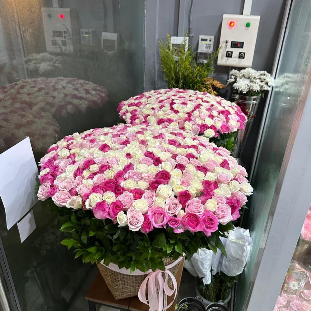 Basket - 1 pz sweet avalanche rose - 100 pz white avalanche rose - 101 pz candy pink rose - 100 pz