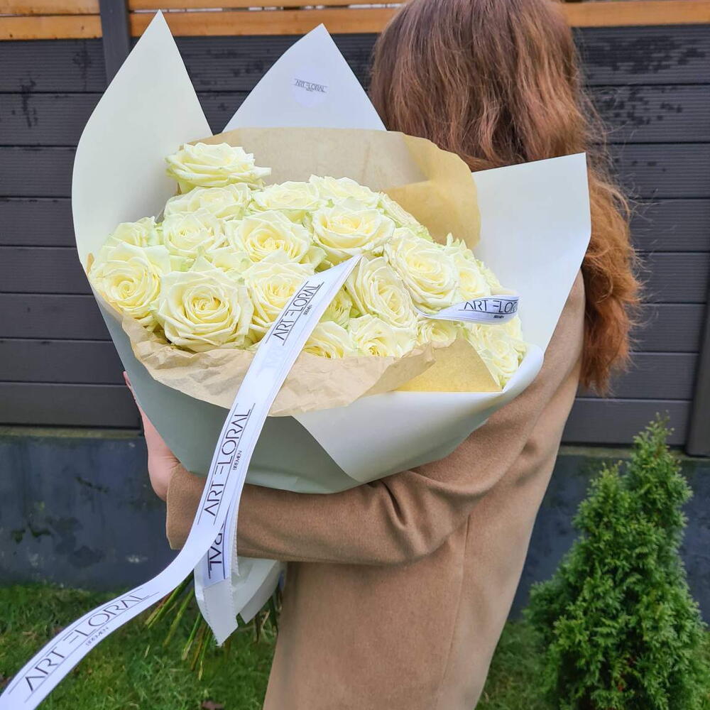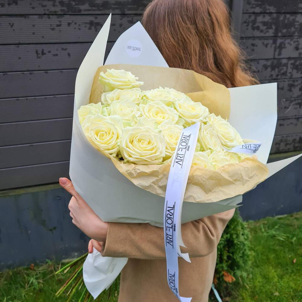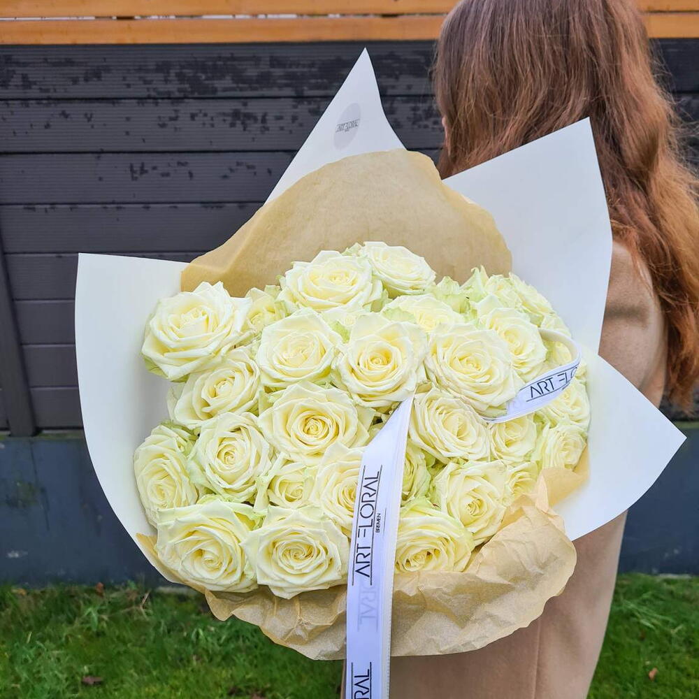 Weiße Rosen sind das Sinnbild von Unschuld, Reinheit und Vollkommenheit. Ihre zarten Blütenblätter strahlen eine zeitlose Eleganz aus, die jeden Raum erhellt. Ein Strauß aus weißen Rosen ist das ideale Geschenk für Anlässe wie Hochzeiten, Verlobungen und Taufen, aber auch, um Trost und Mitgefühl auszudrücken. Er steht für die reinen Gefühle des Herzens und vermittelt eine Botschaft der Hoffnung und Freude. Dieser Blumenstrauß ist eine Erinnerung daran, dass Schönheit in ihrer reinsten Form oft die kraftvollste ist. Er fängt die Einfachheit und die zeitlose Anmut der weißen Rosen ein und lässt sie in voller Pracht erstrahlen. Wir achten ständig auf die letzten Trends im Bereich des Floristikdesigns und unsere Bouquets sind die Reflexion davon. Bei der Zusammenstellung verwenden wir nur ganz frische Blumen und die modernsten Materialien. Unser Team steckt besondere Liebe zum Detail in jedes Arrangement, deshalb finden Sie immer einen Sticker mit unserem Logo und ein Firmen Bändchen als Qualitätssiegel an jedem Strauß. Dem Blumenstrauß legen wir eine Anleitung zur Pflege und ein Mittel zur Verlängerung der Lebensdauer der Blumen bei. Jetzt ganz bequem bestellen und Ihre Blumen an Ihre Wunschadresse liefern lassen.