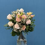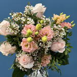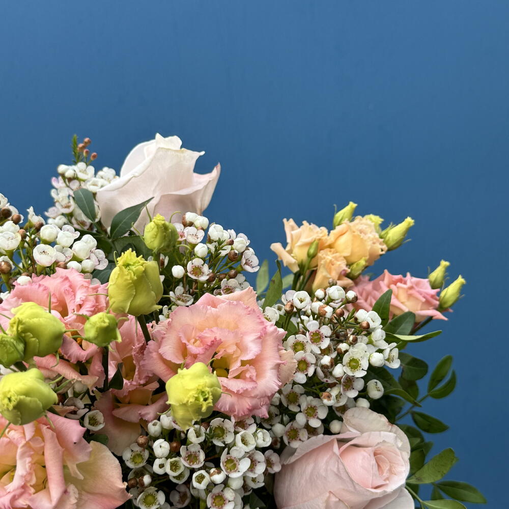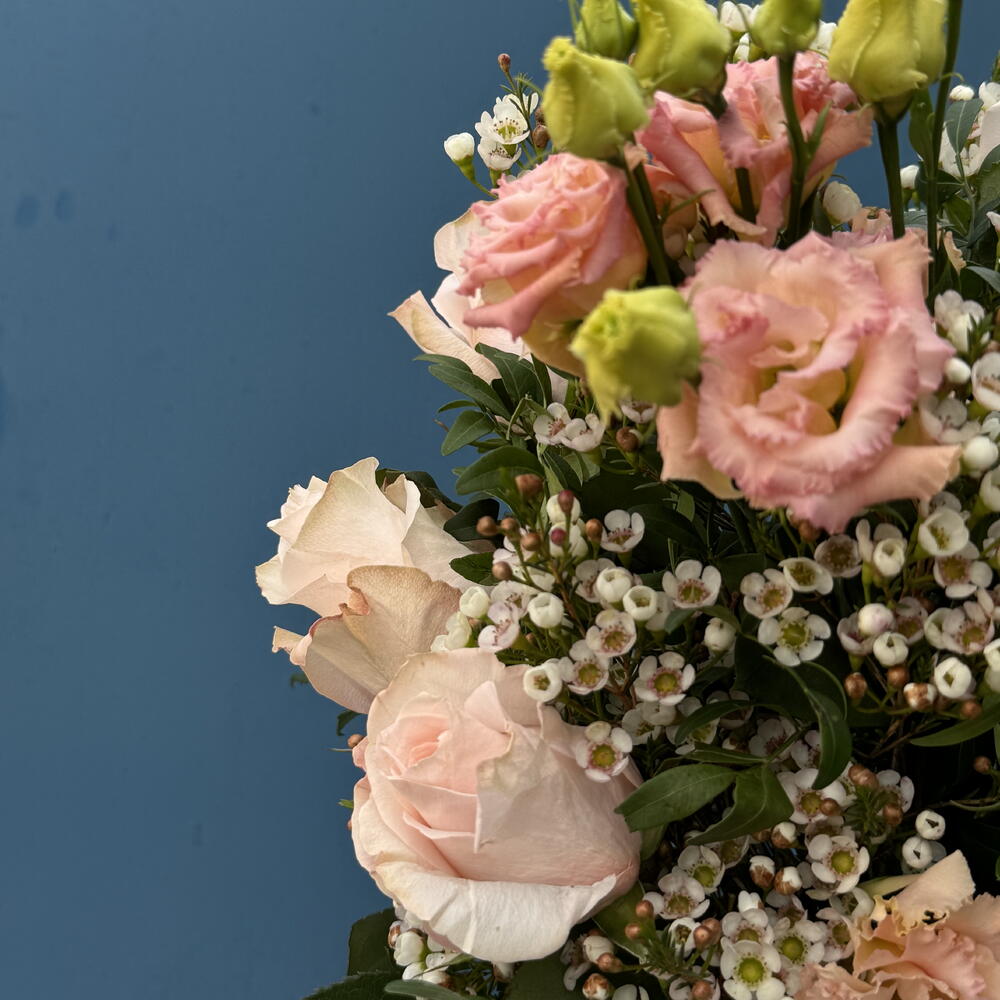Eustoma - 2 pz Fiore di cera - 5 pz lentisco - 4 pz roses - 6 pz
