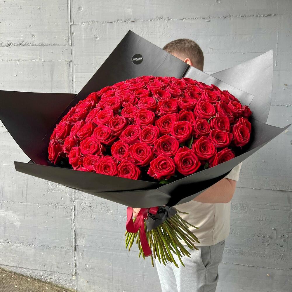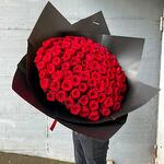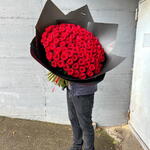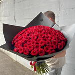 Blumenstrauß 100 Rosen Ein Bouquet aus leidenschaftlichen roten Rosen ist ein zeitloser Ausdruck der Liebe und Hingabe, der die Herzen im Sturm erobert. Die roten Rosen in diesem Bouquet sind von tiefer und intensiver Farbe. Ihre Blütenblätter erstrahlen in einem leidenschaftlichen Rot und symbolisieren Liebe, Leidenschaft und Wertschätzung. Jede Rose ist wie ein kraftvolles Liebesgeständnis, das die Sinne erweckt und die Herzen im Takt der Romantik schlagen lässt. Der Duft dieses Bouquets ist betörend und verführerisch. Er erinnert an eine leidenschaftliche Umarmung und verströmt eine Aura von Intimität und Hingabe. Ein Bouquet aus roten Rosen ist das ideale Geschenk, um Ihre tiefsten Gefühle auszudrücken. Es eignet sich perfekt für romantische Anlässe wie Hochzeiten, Verlobungen oder um einfach Ihre Liebe und Leidenschaft zu zeigen. Dieser Strauß ist wie ein Liebesfeuerwerk in Blütenform und ein Ausdruck Ihrer brennenden Liebe. Wir achten ständig auf die letzten Trends im Bereich des Floristikdesigns und unsere Bouquets sind die Reflexion davon. Bei der Zusammenstellung verwenden wir nur ganz frische Blumen und die modernsten Materialien. Unser Team steckt besondere Liebe zum Detail in jedes Arrangement, deshalb finden Sie immer einen Sticker mit unserem Logo und ein Firmen Bändchen als Qualitätssiegel an jedem Strauß. Es handelt sich um ein Naturprodukt, dadurch sind naturbedingte Abweichungen in der Form, Farbe oder Größe zu den Angaben möglich! Dem Blumenstrauß legen wir eine Anleitung zur Pflege und ein Mittel zur Verlängerung der Lebensdauer der Blumen bei. Jetzt ganz bequem bestellen und Ihre Blumen an Ihre Wunschadresse liefern lassen.