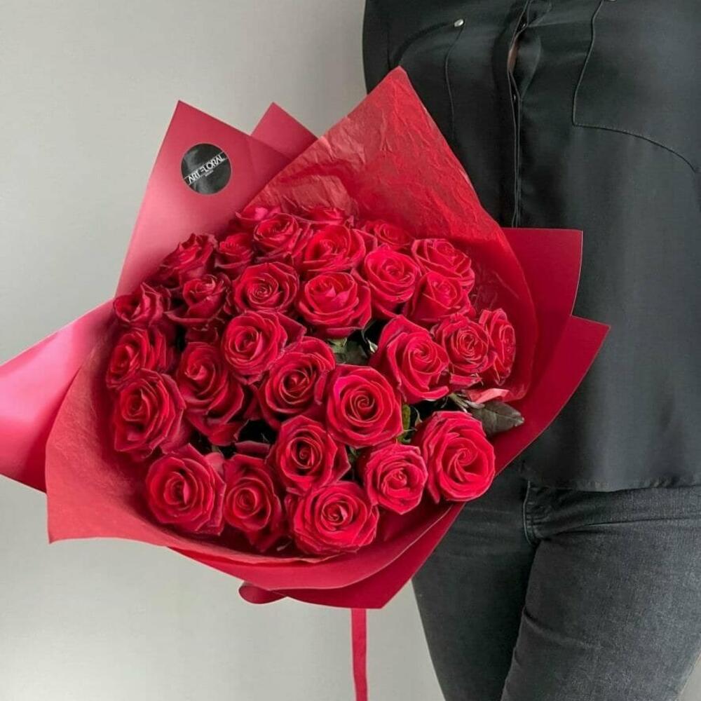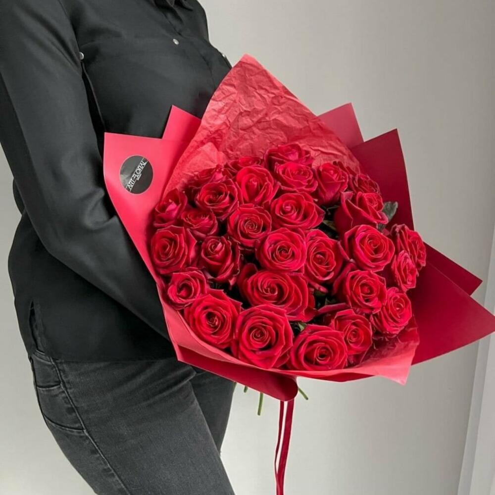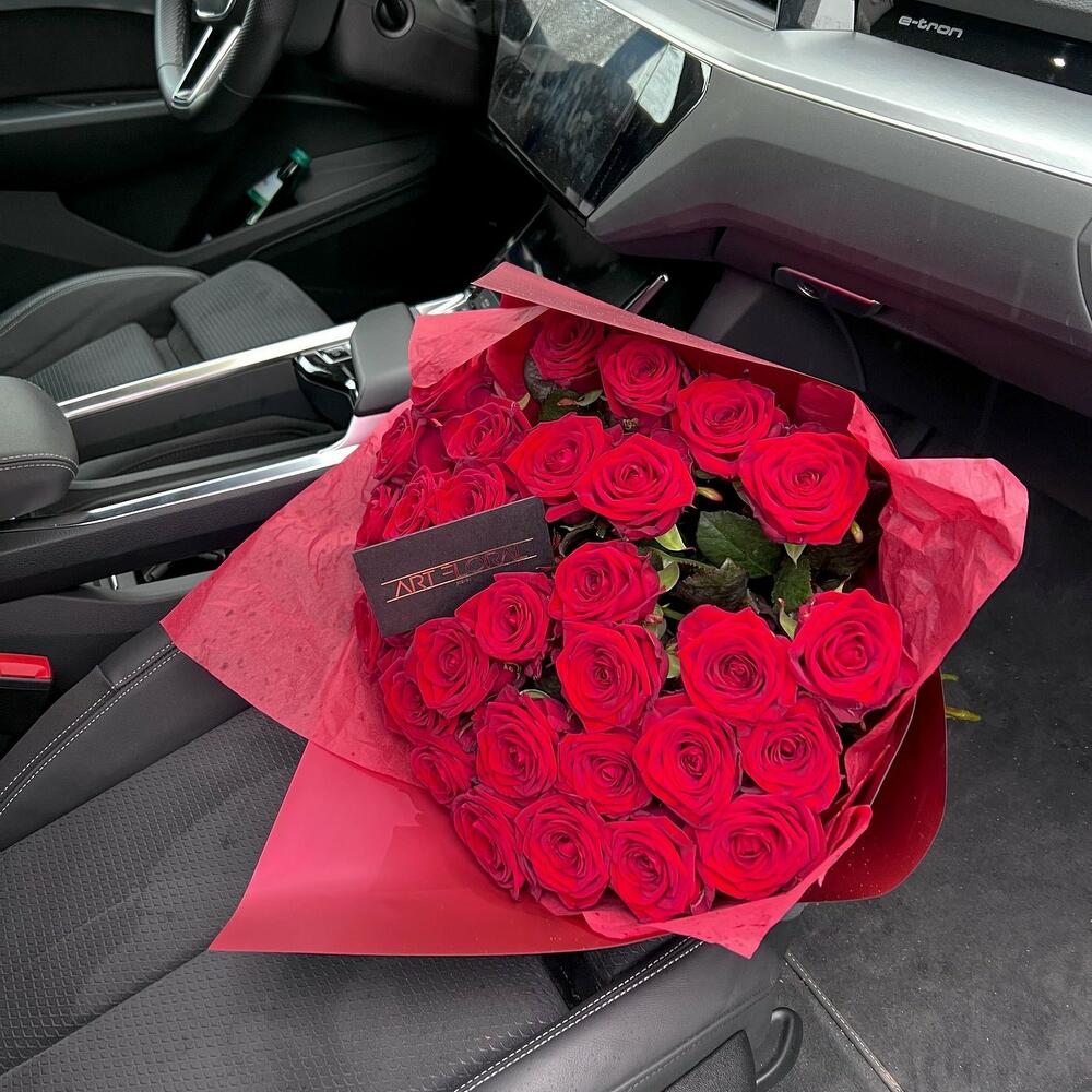 Blumenstrauß Lady in Red Ein sehr elegantes Arrangement aus frischen großblütigen roten Rosen verpackt in ebenfalls knalliges rotes Seidenpapier und Design Folie. Ein Strauß aus roten Rosen strahlt Eleganz und Anmut aus. Er vermittelt das Gefühl, als würde man die rote Rose selbst, das ultimative Symbol der Liebe, in den Händen halten. Dieser Strauß eignet sich perfekt, um Ihre Liebe auszudrücken. Ob zum Valentinstag, zum Hochzeitstag oder einfach, um Ihre Gefühle zu bekunden, ein Blumenstrauß aus roten Rosen wird Herzen erwärmen und die tiefsten Emotionen hervorlocken. Er ist die Sprache der Liebe, die in Blumen übersetzt wird, und ein Geschenk, das für immer im Herzen bleibt. Wir achten ständig auf die letzten Trends im Bereich des Floristikdesigns und unsere Bouquets sind die Reflexion davon. Bei der Zusammenstellung verwenden wir nur ganz frische Blumen und die modernsten Materialien. Unser Team steckt besondere Liebe zum Detail in jedes Arrangement, deshalb finden Sie immer einen Sticker mit unserem Logo und ein Firmen Bändchen als Qualitätssiegel an jedem Strauß. Hinweise: Die Erstellung jedes Arrangements erfolgt individuell mit viel Leidenschaft für unser Handwerk und somit ist auch jeder Strauß ein Einzelstück und kann etwas von Abbildungen abweichen. Es handelt sich um ein Naturprodukt, dadurch sind naturbedingte Abweichungen in der Form, Farbe oder Größe zu den Angaben möglich! Es wurde unter anderem Saisonware verwendet und können nach Bedarf durch unsere Floristen ersetzt werden. Das Erscheinungsbild und die Farbgebung bleiben erhalten. Alle Preise inkl. MwSt. und zzgl. Lieferkosten Jetzt ganz bequem bestellen und an Ihre Wunschadresse liefern lassen.