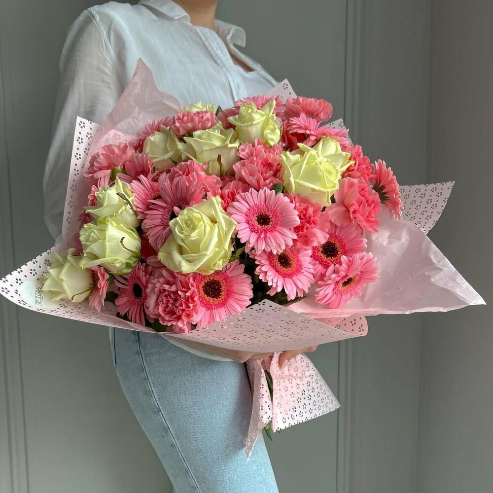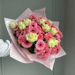 Blumenstrauß Pink forever Die Anordnung der weißen Rosen, rosafarbenen Nelken und rosa Gerbera in diesem Bouquet ist eine harmonische Kombination von Farben und Formen. Die Blumen ergänzen sich perfekt und erzeugen ein Bild von Eleganz und Lebensfreude. Der Duft dieses Blumenstrauß ist frisch und blumig. Er erinnert an einen Spaziergang in einem duftenden Garten und verströmt eine Atmosphäre der Frische und Freude. Ein Blumenstrauß aus weißen Rosen, rosafarbenen Nelken und rosa Gerbera ist das ideale Geschenk, um Ihre Liebe und Zuneigung auszudrücken, sei es zum Valentinstag, zu einem Jubiläum oder einfach, um jemandem einen fröhlichen Tag zu bereiten. Dieser Strauß ist ein Ausdruck von Liebe und Lebensfreude, der die Herzen erobert. Wir achten ständig auf die letzten Trends im Bereich des Floristikdesigns und unsere Bouquets sind die Reflexion davon. Bei der Zusammenstellung verwenden wir nur ganz frische Blumen und die modernsten Materialien. Unser Team steckt besondere Liebe zum Detail in jedes Arrangement, deshalb finden Sie immer einen Sticker mit unserem Logo und ein Firmen Bändchen als Qualitätssiegel an jedem Strauß. Hinweise: Die Erstellung jedes Arrangements erfolgt individuell mit viel Leidenschaft für unser Handwerk und somit ist auch jeder Strauß ein Einzelstück und kann etwas von Abbildungen abweichen. Es handelt sich um ein Naturprodukt, dadurch sind naturbedingte Abweichungen in der Form, Farbe oder Größe zu den Angaben möglich! Es wurde unter anderem Saisonware verwendet und können nach Bedarf durch unsere Floristen ersetzt werden. Das Erscheinungsbild und die Farbgebung bleiben erhalten. Alle Preise inkl. MwSt. und zzgl. Lieferkosten Jetzt ganz bequem bestellen und an Ihre Wunschadresse liefern lassen. ширина, см: 31 высота, см: 61 длина, см: 31