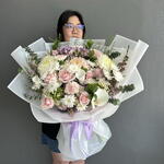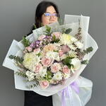 Rusco - 6 pz camomilla - 2 pz ortensia verde - 5 pz ortensia viola - 2 pz limonio rosa - 1 pz wax flower purple - 2 pz ping pong pink - 1 pz eucalyptus xl - 1 pz thilapsi - 1 pz aster white monalisa - 7 pz calaleli - 3 pz rx white - 2 pz rx pink - 1 pz diantus yukari - 3 pz rose pink avalan - 7 pz