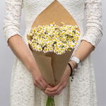Delight in the simple poise of this Mono Bouquet, featuring a charming bloom of 15 fresh daisies. Gently held together in aesthetically pleasing flower packaging, this bouquet tells a story of grace, cheerfulness, and enduring beauty. The perfect gift to light up any occasion or simply to create a moment of everyday elegance.