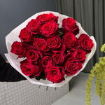 Un bouquet di rose rosse classiche, perfetto per creare un'atmosfera romantica ed esprimere i propri sentimenti.