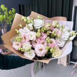 Il delicato bouquet di eustoma incanta per la leggerezza e l'eleganza. I fiori delicati dai petali setosi creano una composizione armoniosa, ideale per un compleanno, per ringraziare o per un gesto romantico.
