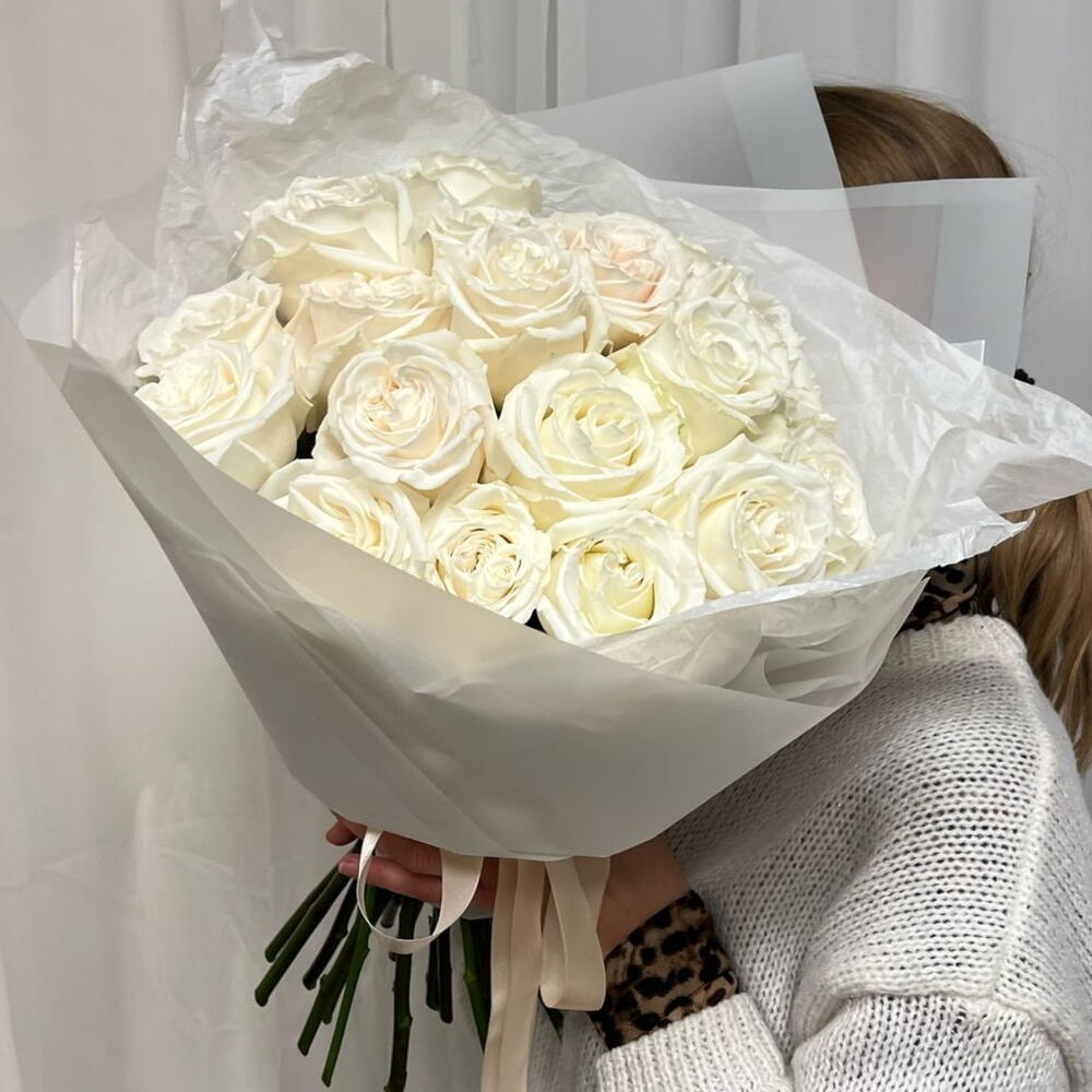 "Tenderness" - white roses, 25 pcs