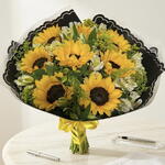 Solidago - 6 pz astromelias - 8 pz papel - 2 pz girasoles mini - 8 pz moño - 1 pz