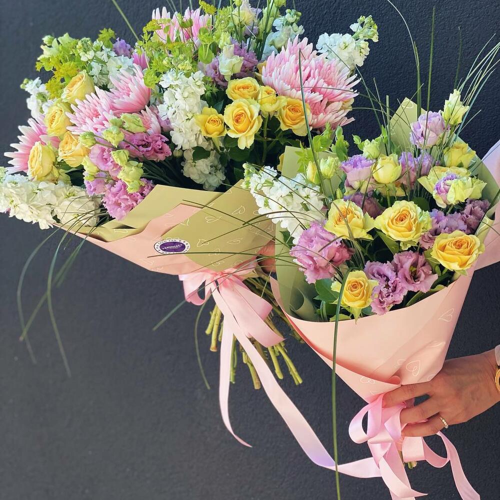 Комплект букетов по случаю рождения малыша. Для мамы и ребенка. Возможно исполнение в разных цветах и тонах На фото изображен большой букет