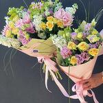 Eustoma - 9 pz Crisantemo - 5 pz rose - 15 pz levkoe - 6 pz