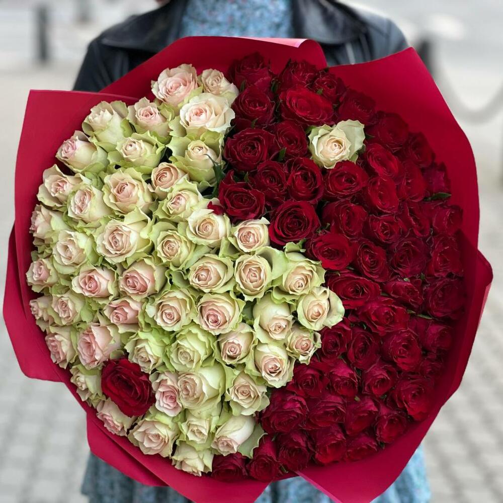 white and red kenyan roses - 101 pz