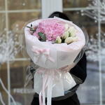 Букет из гортензии и белых тюльпанов - "Розовая изысканность"