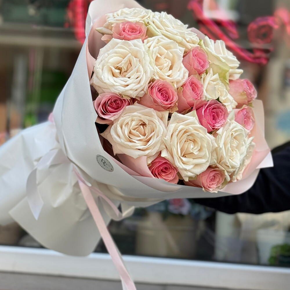 Bouquet di rose rosa e bianche