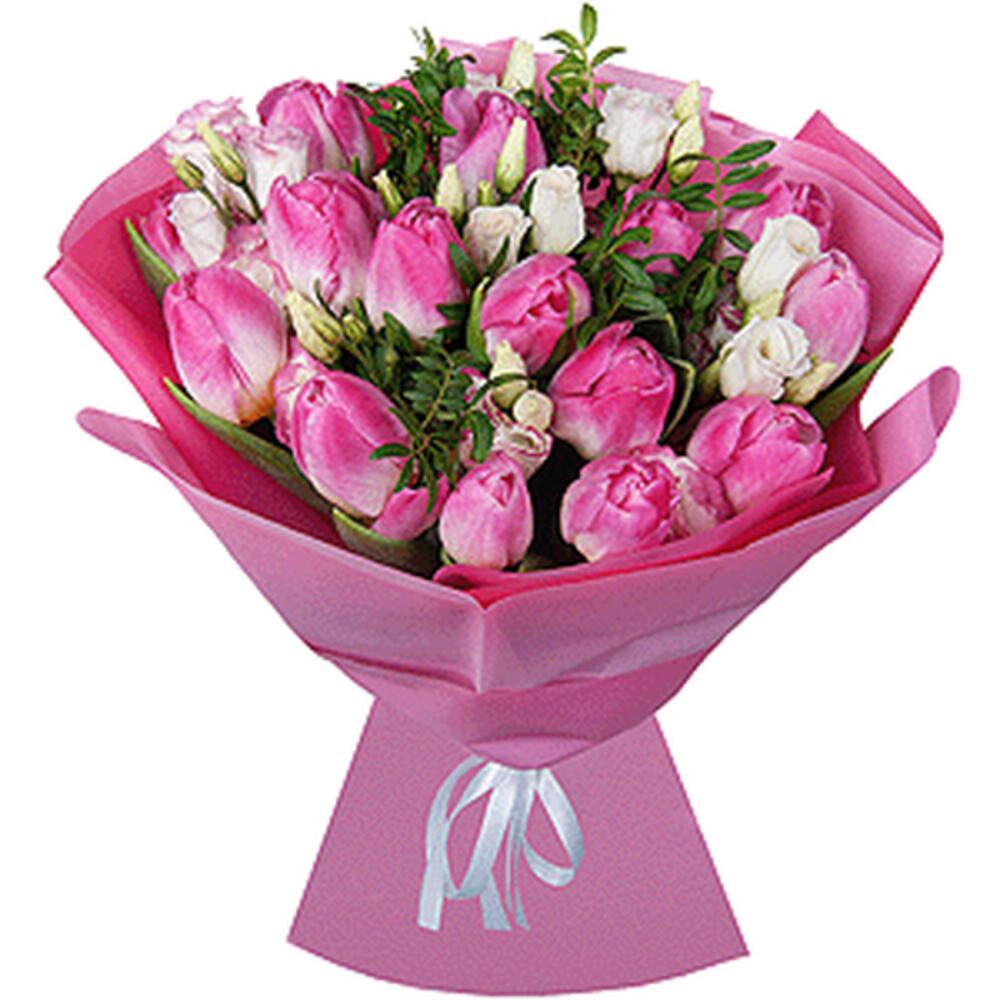Eustoma - 3 pz tulipano rosa - 15 pz pistacchio - 2 pz confezione decorativa - 1 pz
