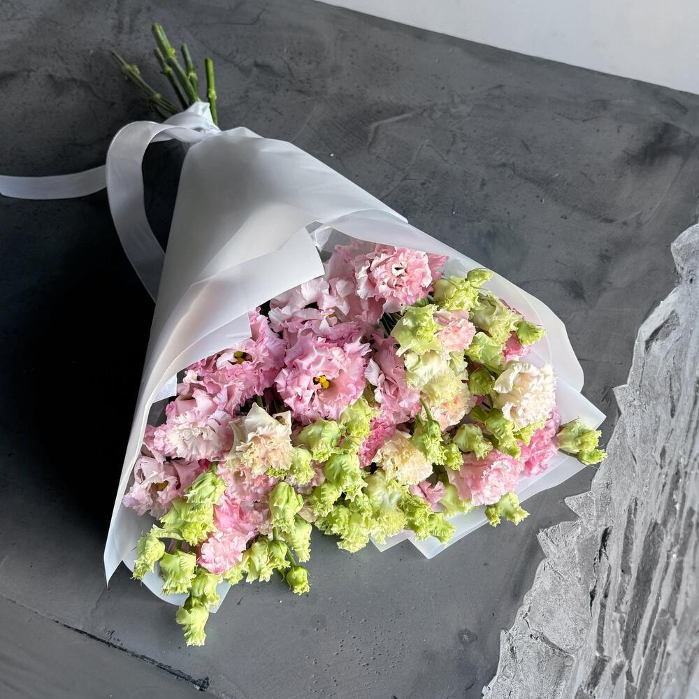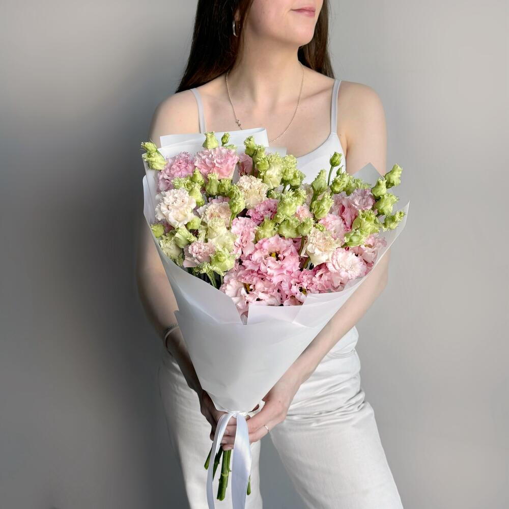 Delikatny i wyrafinowany bukiet z siedmiu gałązek eustomy (lizjanta), który zachwyca swoją lekkością i subtelną strukturą płatków. Łagodne odcienie różu i kremu tworzą harmonijną, romantyczną kompozycję, idealną na wyjątkowe chwile i do wyrażenia szczerych uczuć. Białe opakowanie podkreśla lekkość i elegancję bukietu, czyniąc go stylowym i uniwersalnym prezentem na każdą okazję.