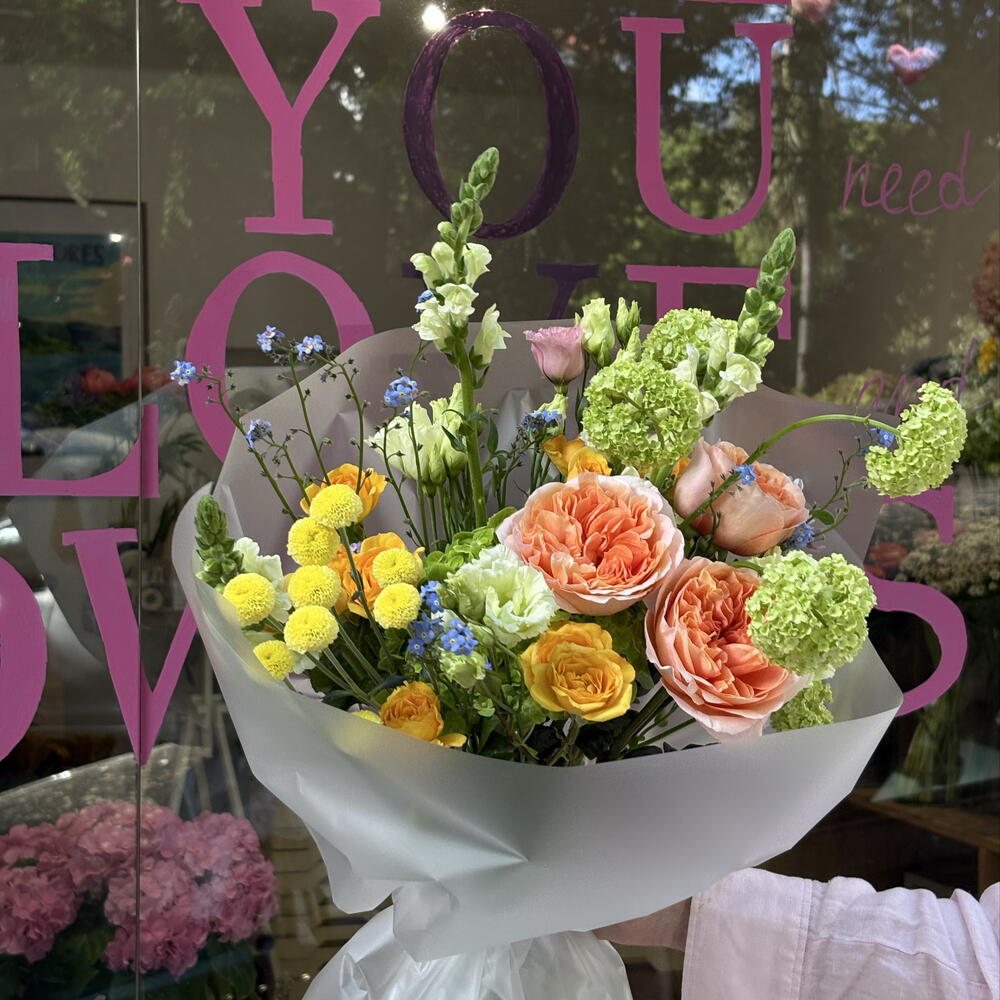 Ortensia - 1 pz Cespuglio di crisantemo - 2 pz Rosa cespuglio - 1 pz Rosa peonia - 3 pz зелень декоративная - 2 pz Bocca di leone - 3 pz