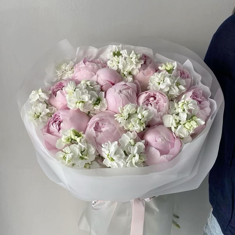 Дуо букет пионы и маттиола