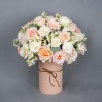 Eustoma - 5 pz Eucalipto - 2 pz rose - 30 pz vaso di vetro - 1 pz leather wrapping - 1 pz