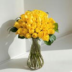 rosas amarillas - 30 pz florero de cristal - 1 pz