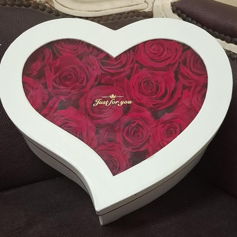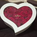 flower box a forma di cuore con 25 rose rosse fresche