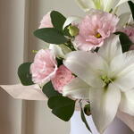 Eucalipto - 5 pz Eustoma - 4 pz Giglio - 3 pz garofano spray - 3 pz