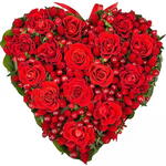 And if someone asks what love is, who knows how to answer it? Whatever you ever say the least will be ... Only to show can by acting ... A moss heart-shaped container filled with 15 red roses and red hypericum expresses everything you want to say.