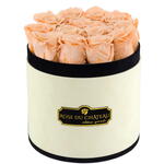 Ami i regali eleganti, ma i fiori comuni non sono abbastanza eleganti? Ti consigliamo le rose eterne, fiori freschi che mantengono colore e forma per almeno due anni. Puoi star certo che questo elegante set brillerà molto più a lungo di un bouquet tradizionale. Coco Édition Spéciale presenta un esclusivo fiocco beige e nero, una goffratura dorata e un logo tridimensionale. Tutto questo crea una scatola di fiori unica e lussuosa. Il color tè del fiore simboleggia amicizia, rispetto e gratitudine. Ha una connotazione neutra simile al rosa. Secondo l'etichetta, questo colore dovrebbe essere regalato più spesso. Numero di rose: circa 13 (a seconda delle dimensioni del capolino) Diametro della scatola: Ø 20 cm Utilizziamo una delle varietà più pregiate di rose eterne disponibili al mondo.