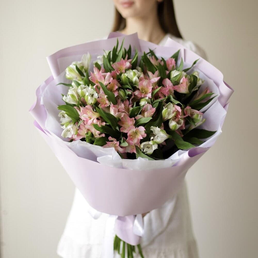Микс альстромерий в нежном оформлении