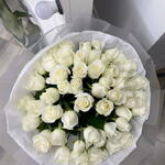 A bouquet of 51 white roses is a universal and status option for significant events. White roses symbolize sincerity, respect and purity of intentions, so this bouquet is suitable for both personal and official occasions. The dense round shape and minimalistic packaging make the composition neat, modern and appropriate in any context. A bouquet of 51 white roses is often chosen for a birthday, anniversary, marriage proposal, wedding, discharge from the hospital, gratitude or apology. It is also suitable for business occasions: congratulations from partners, managers, clients, as well as for official events and celebrations. The composition is made from fresh premium white roses with a dense bud and lasts up to 7-10 days with proper care. The neutral color scheme can easily be combined with any interior and event style.