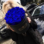 Le rose eterne sono fiori vivi che mantengono il loro colore e la loro forma per almeno 2 anni. Puoi essere certo che questo elegante set stupirà decisamente più a lungo di un tradizionale bouquet. Le rose blu nel nostro flowerbox nero piaceranno sicuramente a chi ama qualcosa di più rispetto ai colori tradizionali. È una delle composizioni cromatiche più interessanti e audaci. Il colore blu significa speranza e sogni. Può simboleggiare il desiderio di realizzare le proprie aspirazioni e essere legato alla fede nel cambiamento. La rosa blu è anche associata agli inizi di un amore che sboccia. Numero di rose: ca. 13 (a seconda delle dimensioni del bocciolo) Diametro della scatola: Ø 20 cm Usiamo una delle migliori varietà di rose eterne disponibili al mondo.