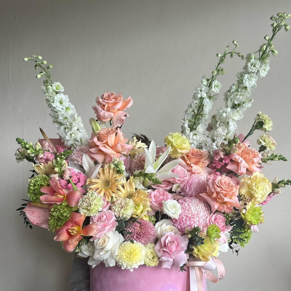 Dear customers, our arrangements are made from seasonal flowers, so substitutions may occur depending on availability. Due to the geographical features of Bali, where we are located, slight changes of flowers may also happen without affecting the overall look of the bouquet. Our priority is to preserve the style, color scheme, and mood of the composition. We sincerely appreciate your understanding.