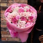 garofano - 11 pz francia rosa - 8 pz stiffa - 7 pz ozathamnus - 5 pz rose country blues - 7 pz