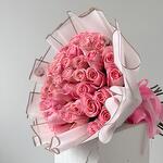 Beautiful mono bouquet created from pink roses with Ecuador origin. The shade may vary slightly depending on the specific variety. We guarantee very high quality roses that last a very long time. Stem length 70 cm.