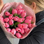 Packaging of the bouquet, tulip variety, shade of pink color may vary from the photo.