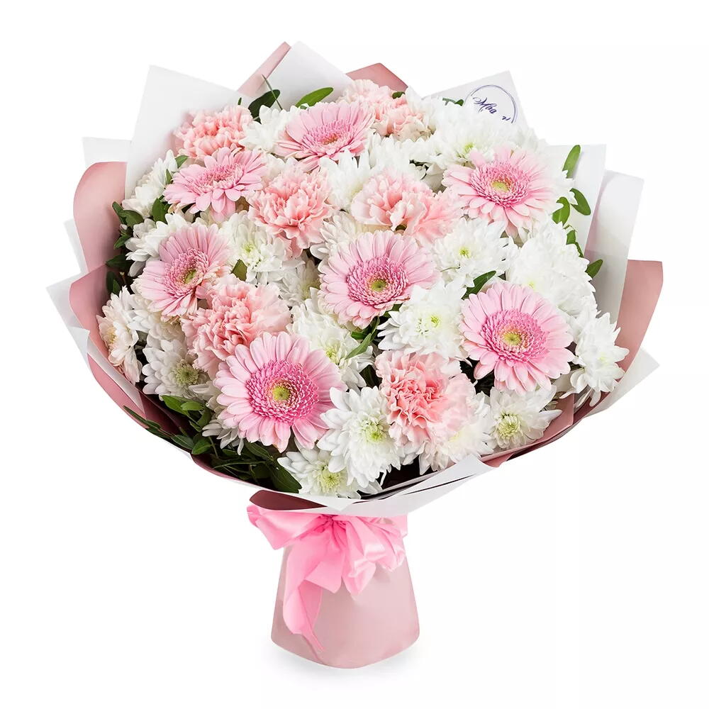 Gerbera - 7 pz garofano - 7 pz confezione decorativa - 1 pz crisantemo arbustivo - 5 pz verdure verdi - 3 pz
