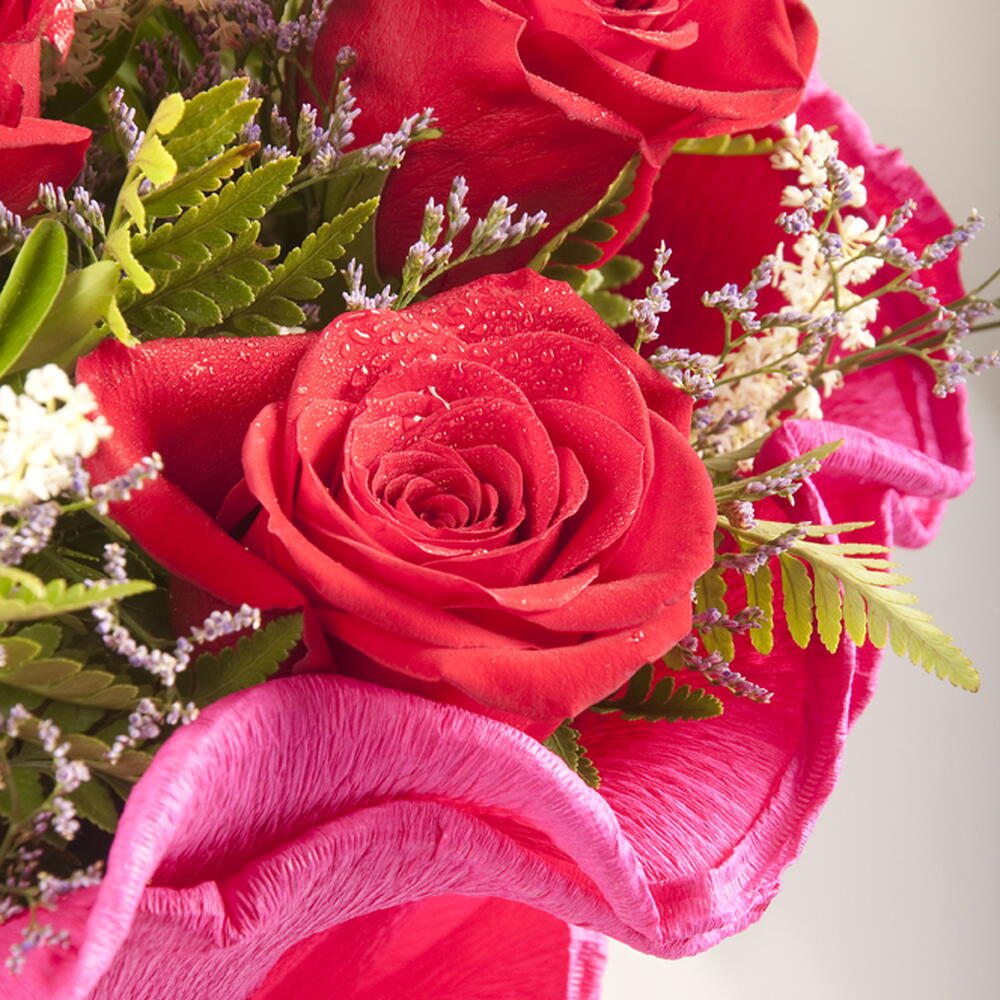 12 rosas 2 gipsófilas