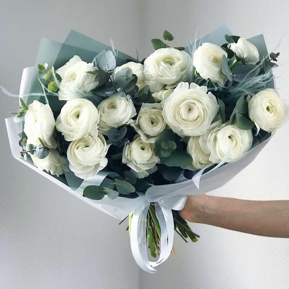 Ранункулюсы белые с эвкалиптом и сухоцветами